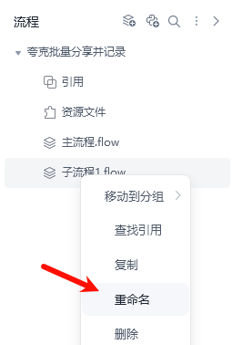 直接在右面的流程列表里重命名, 也能达到一样的效果