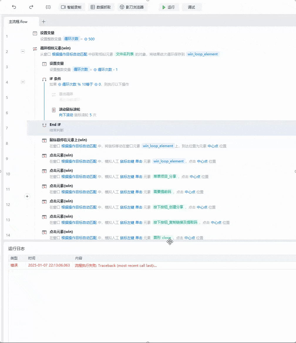 比如原始流程名是**错误处理**, 到你账号上改成了**错误处理1**, 运行成功后再拷贝给客户. 再登录客户的账号改回**错误处理**